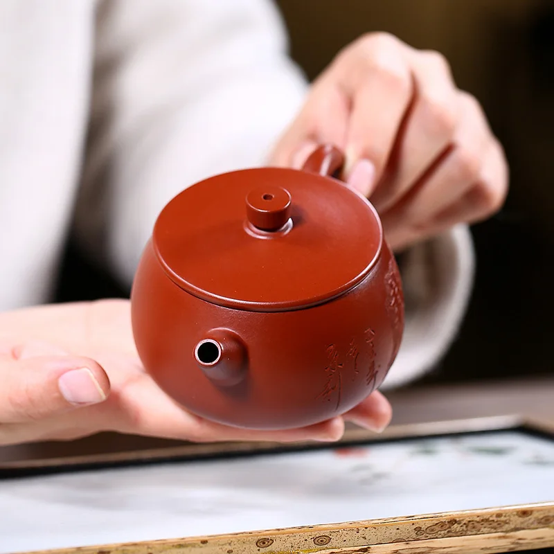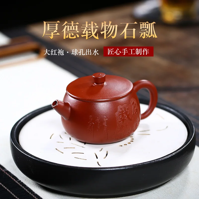 HOT SALE Tea Set Yixing Dark-red Enameled Pottery Teapot Social Commitment Stone Drum Bright Red Robe Raw Or