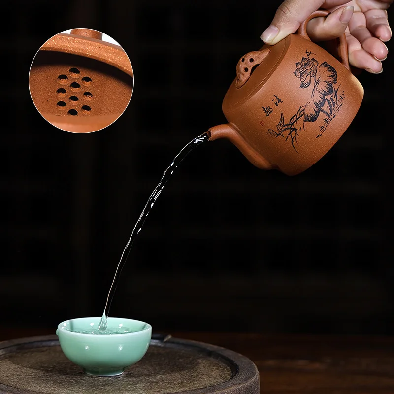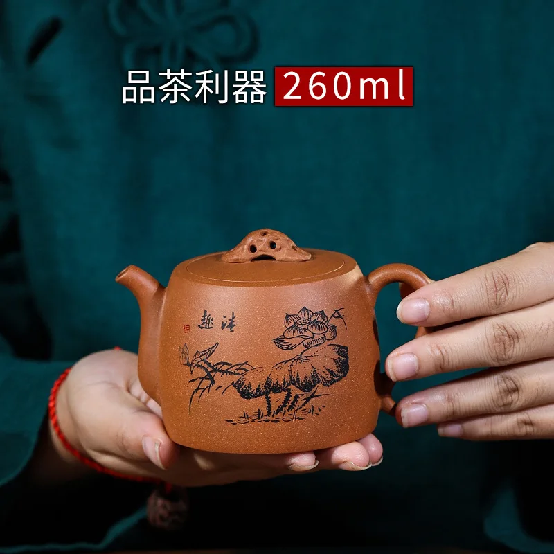 HOT SALE Hundred Believe Dark-red Enameled Pottery Teapot Yixing Raw Ore Down Slope Mud Lettering Taihu Lake