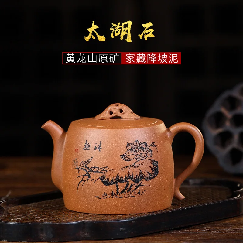 Hundred Believe Dark-red Enameled Pottery Teapot Yixing Raw Ore Down Slope Mud Lettering Taihu Lake