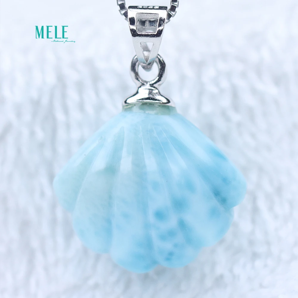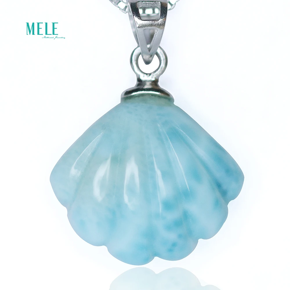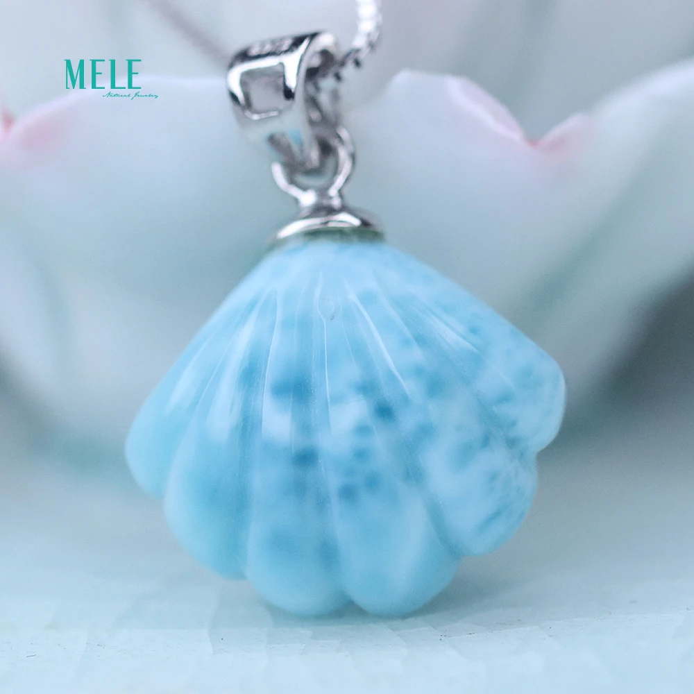 HOT Sale Natural Larimar Ribbon Shell Cradle 925 Silver Natural Stone Blue Larimar Female Cradle Gift